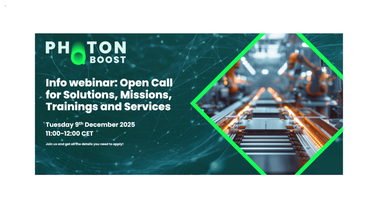 PhotonQBoost is hosting an Open Call Info webinar on 9th December 2025 to present the upcoming funding opportunities and support services available through the project’s Open Call for Solutions, Missions, Trainings, and Services.